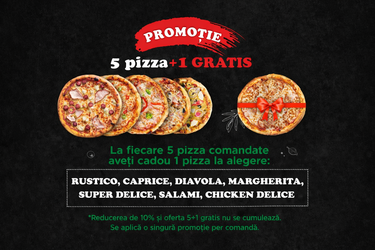 Comandă 5 pizza și primește o pizza cadou*, Profită acum, de oferta noastră 5+1!