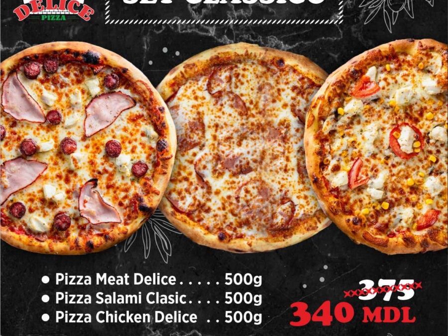 Ulei de masline , sos de rosii, mozzarella , sunca , salam , ciuperci , ceapa , ardei gras , cabanos, porumb , oregano.